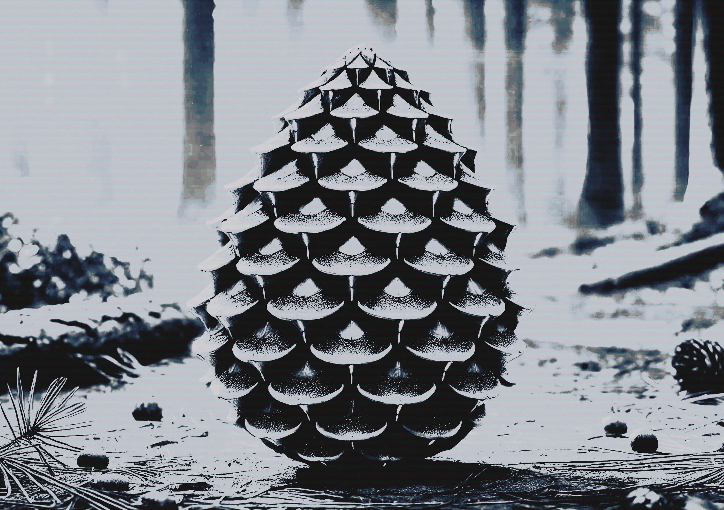 Image: One of several iterations of the seminal biomimetic wildfire sensing concept Pyri-CONE™, which inspired by serotinous cones that are native to California, was first described in Panarchistic Architecture (2018). The device, of which the name was coined from pyriscence - the scientific term that is used to describe seed release that has been triggered by wildfire - autonomously senses and processes environmental data using a combination of biochemical and ballistic processes that mimic those of the pinecones that inspired it. One of several unprecendented design concepts developed during the PhD research programme, this environmental sensor functions in an essentially passive way, in that it does not require an energy source, as it is activated by the melting of resins that hold its external parts together. This process then triggers the ballistic action that sends a signal to the biotechnological IOT network of which it is part. Like other components of the (B)IOT™, it enables real-time data to migrate across an ecologically smart environment network designed to enhance both wildfire resilience and recovery in the wildland-urban-interface.